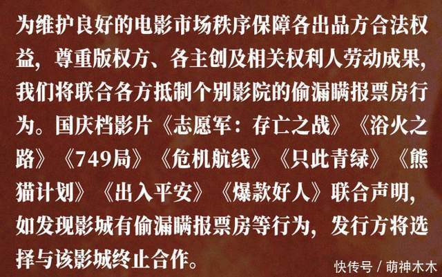 只能说2024年国庆档八部真人电影表面上还是保留了体面,联合声明含蓄点出了市面上存在偷票房的行为,但是终究没有撕破脸,把锅都让影院背了。
