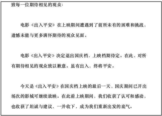 联想到从国庆档撤档的新片《出入平安》,也是偷票房的受害者,可是就算把被偷的票房都还回去,也很难改变《出入平安》撤档的结局。