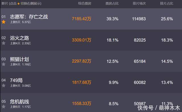 根据专业购票机构统计,《749局》口碑翻车之后,排片一天比一天低,拿到红利的其实是《熊猫计划》,成龙大哥加上国宝熊猫成功抢占了亲子市场。